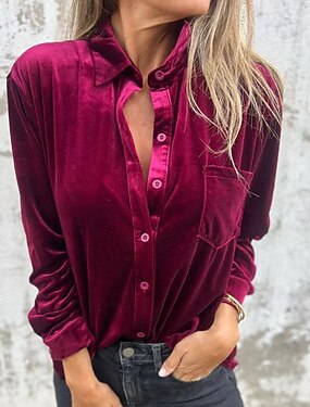 Per donna Camicia Velluto Elegant Elegante Tasca Bottoni Tinta unica Elegante Manica Lunga Colletto a Camicia Top Regolari Lavoro Ferie Uscire Verde militare Fucsia Marrone Primavera Autunno
