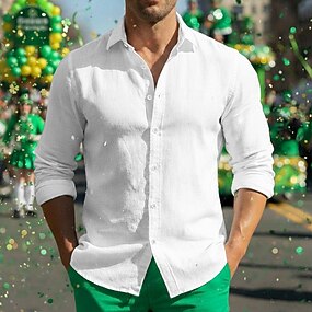 Per uomo Camicia Camicia di lino Camicia Estiva Camicia button-down Camicia da Spiaggia Camicie sbottonate Semplice Vacanza Abbigliamento quotidiano Nero Bianco Verde chiaro Rosa Manica Lunga Collo