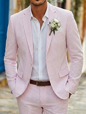 Uomo Abiti in seersucker Matrimonio in Spiaggia Casuale Rosa Azzurro cielo Primavera & Estate Tuta Bavero classico Quotidiano Casual A righe Vestibilità su misura 2 pezzi Monopetto Due Bottoni
