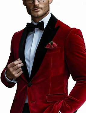 Per uomo Blazer di velluto Collo a scialle Natale Festa Casual Tinta unita Blazer di velluto Rosso Viola Vestibilità su misura Monopetto Un Bottone