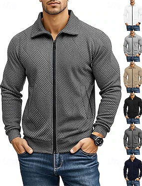 Per uomo Giacca Leggera Giacca Casual Vacanza Quotidiano Traspirabilità Tasca Jacquard Primavera Autunno Semplice Moda Classico Bavero Regolare Nero Bianco Blu marino Cachi Grigio chiaro Giacca