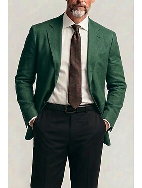 Da uomo Giacca Leggera Blazer in lino Affari Lavoro Formale Leggero Classico Estate Primavera Cotone Poliestere Tinta unica Tasche Multiple Monopetto due bottoni Giacca Blu marino Verde scuro