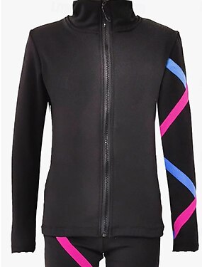 giacca in pile per pattinaggio artistico, giacca da pattinaggio sul ghiaccio da donna e da ragazza, top nero rosa blu elastico, abbigliamento da pattinaggio per allenamento e competizione, termico,