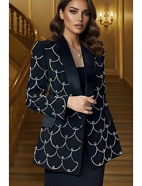 Per donna Da donna Blazer Giacca Sportiva Formale Ospite di nozze Serata Formale Raso Strass Elegante Frac Manica Lunga Collo a Lancia Monopetto