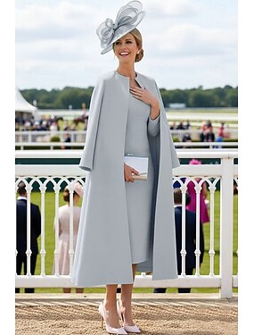 Due Pezzi Tubino Colonna Lunghezza al ginocchio Abito Derby Abito da cerimonia per signora Manica Lunga Girocollo Elegante Derby del Kentucky Tessuto Elasticizzato Abiti con Giacca con Tinta unita