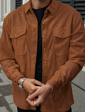 Per uomo Giacca Camicia Giacca in Velluto a Coste Giacca Casual Vacanza Quotidiano Traspirante Tasca Primavera Autunno Semplice Moda Classico Bavero Regolare Nero Marrone Beige Giacca