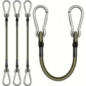 4 cinghie elastiche con gancio per trapano, cinghia in gomma premium da 30 cm (12") di colore verde militare con gancio per trapano, ideale per tende da esterno, portapacchi, campeggio, carico,