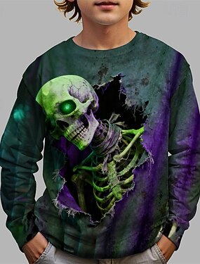 Ragazzi 3D Teschio Maglietta Manica Lunga Primavera Autunno Moda Essenziale Bambini 4-12 Anni Girocollo All'aperto Casuale Quotidiano Vestibilità regolare