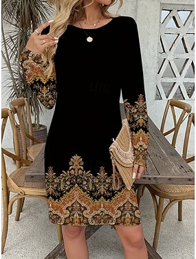 Per donna Mini Abito Abito a corsetto Vacanza Casual Boho Quotidiano Compleanno Ferie Vestibilità regolare Grafico Paisley Tribale Manica Lunga Girocollo Nero Oro Grigio Primavera Autunno Inverno