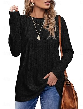 Per donna Maglietta Semplice Moda Elegante Classico Manica Lunga Girocollo Top Regolari Quotidiano Uscire Weekend Blu Nero Blu Reale Marrone Verde Estate Primavera