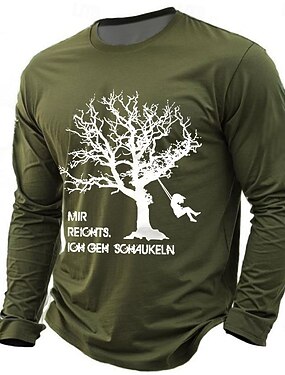 stampa di lettere Anziani Nero Arancione Blu scuro maglietta Per uomo Grafico 100% cotone Camicia Classico Informale Camicia Manica lunga Maglietta comoda Primavera Autunno Abbigliamento di stilista