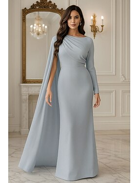 Tubino Colonna Lunghezza al pavimento Abiti da Ballo Abito da Sera Da principessa Abito formale Elegante Manica Lunga Girocollo Matrimonio Formale Crepe Elasticizzato con Scialle