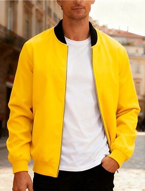 Per uomo Giubbotto bomber Giacca di transizione Uscire Tasca Primavera & Autunno Semplice Classico Collo alla coreana Regolare Nero Giallo Rosso Blu reale Grigio chiaro Giacca