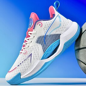 scarpe da basket da uomo bianche e blu con tecnologia ammortizzante: scarpe comode e di supporto per le partite di basket