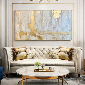 Dipinti Ad Olio Astratti Su Tela Fatti A Mano Foglia D'oro Trama Spessa Quadri Cuadros Line Quadri Arredamento Soggiorno Grandi Immagini Per La Casa