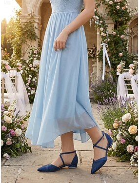 scarpe da damigella d'onore da donna in pizzo blu navy con cinturino alla caviglia – scarpe da sposa con punta a punta e tacco basso