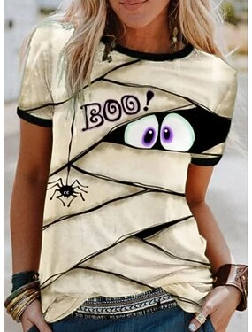 T-Shirt da donna Grafica Mostro Streghe Vintage Elegante Classica Maniche Corte Collo Giro Regular Tops Stampa Giornaliera Weekend Nera Bianca Arancione Khaki Grigio Chiaro Estate Primavera Autunno