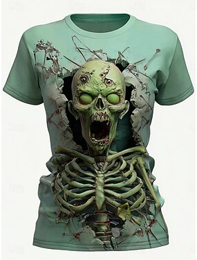T-shirt donna teschi grafica scheletro vintage stile casual maniche corte collo rotondo top regolari quotidiano uscita fine settimana stampa rosa blu viola verde estate