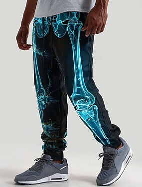 Pantaloni tuta da uomo scheletro neon glow pantaloni jogger pantaloni vita media cordoncino vita elastica stile punk gotico scuro vacanza streetwear pantaloni sportivi con tasche primavera autunno 3D