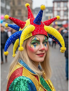 Cappello giullare multi-colore unisex per Mardi Gras con pompon e punti di paillettes - copricapo per clown di carnevale Mardi Gras e maschere