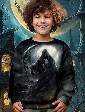 Halloween Ragazzi 3D Fulmini Felpa Manica Lunga Primavera Autunno Moda Essenziale Bambini 4-12 Anni Girocollo All'aperto Casuale Quotidiano Vestibilità regolare