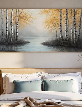 betulle autunno foresta fiume stile vintage dipinto su tela arte murale arredamento fattoria arte natura quadro da parete belle arti pittura