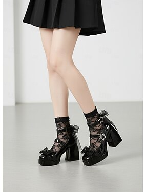 scarpe con plateau e fibbia a stella in vernice nera da donna – scarpe mary jane in stile gothic lolita con fiocchi e nastro trasparente, ideali per Halloween, cosplay e moda di ispirazione retrò
