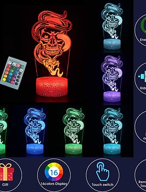 halloween 3d luce notturna illusione fantasma teschio lampada da notte 16 colori interruttore tattile a cambiamento graduale lampada da tavolo usb per regali di halloween o decorazioni per la casa