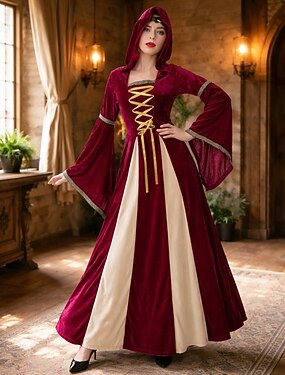 Medievale Rinascimento Lunghezza alla caviglia Vestito Costume di fantasia Con cappuccio Manica del polsino svasato Vichingo Elfico Collo quadrato Costume Per donna Celtico Fantasia Halloween