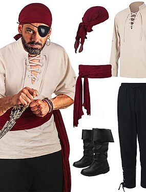 Retrò Vintage Punk & Gotico Medievale Camicia Manica del polsino svasato Principe Cavaliere Gentiluomo Straniero Nobile Ricamato Con Volant Tinta unica Costume Per uomo Costumi da pirata Fantasia