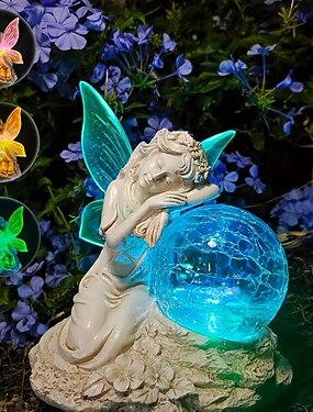 Statuetta di angelo solare per esterni, giardino, cortile, veranda, vialetto, decorazione paesaggistica, realizzata in resina