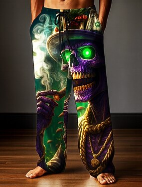 Costumi da uomo teschio pantaloni pantaloni baggy pantaloni casual vita media stile gotico scuro vacanza vita con cordoncino elastico pantaloni simili al lino con tasche estate primavera autunno 3D