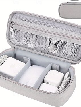 borsa da viaggio con gestione dei cavi, organizer tecnologico grigio chiaro con cerniera per caricabatterie, power bank, hard disk, cavi dati – custodia da viaggio portatile