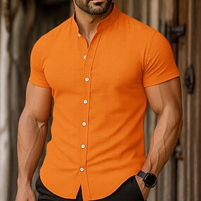 Per uomo Camicia Camicia di lino Camicia Estiva Abbigliamento da spiaggia Camicia con colletto alla coreana Camicia con Bottoni Semplice Vacanza Casuale Nero Bianco Arancione Grigio Manica Corta