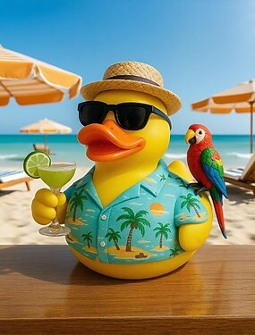 Statuetta a forma di anatra pappagallo tropicale hawaiana, divertente decorazione a forma di anatra per feste in spiaggia, statua a forma di anatra con uccello della foresta pluviale a tema isolano,