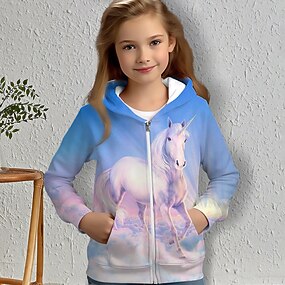 da ragazza con cappuccio 3D cavallo cappotto capispalla manica lunga stampa 3D autunno inverno moda attiva stile carino poliestere bambini 3-12 anni all'aperto casual quotidiano vestibilità classica