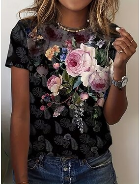 Per donna Maglietta Stampato Floreale Casual Manica Corta Girocollo Top Regolari Quotidiano Blu Nero Bianco Verde chiaro Viola Estate