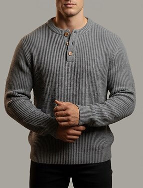 Per uomo Maglione Maglione a maglia A Coste Maglia Top Regolari Bottoni Lavorato a maglia Semplice Henley Moda Essenziale Vacanza Abbigliamento quotidiano Abbigliamento Autunno Inverno Nero Cachi M L