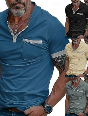 Per uomo Maglietta Maglia Henley Manica Corta Henley Estate Primavera Semplice Moda Streetwear Tempo libero Tasche Casuale Quotidiano Vacanza Blu Nero Bianco Maglietta Top per Uomo