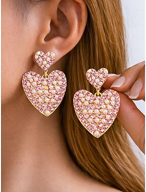 orecchini pendenti a forma di cuore con strass da donna, orecchini pendenti in lega rosa e multicolore con finti diamanti, gioielli romantici ed eleganti per donna, perfetti per San Valentino, feste e appuntamenti