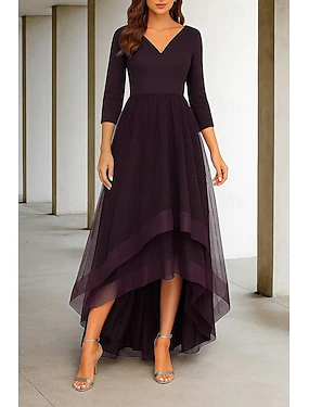 Abito da sposa High-low A-Line V Neck manica 3/4 lunghezza tè tessuto elasticizzato abiti da sposa con volant
