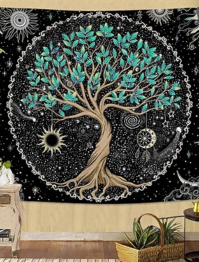 albero della vita mandala celeste arazzo da parete sole luna stelle galassia acchiappasogni bohémien hippy psichedelico nero verde acqua camera da letto soggiorno dormitorio arredamento meditazione