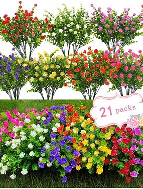 12 mazzi di fiori artificiali da esterno, realistici, resistenti ai raggi UV, piante finte in plastica, piante da appendere per interni ed esterni, decorazioni per fioriere da giardino, verande e