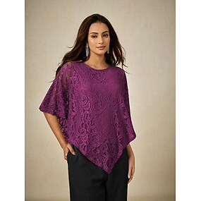 Per donna Blusa Top Eleganti Pizzo Patchwork Stratificato Semplice Elegante Mezza Manica Girocollo Top Regolari Quotidiano Ospite di nozze Viola Estate Primavera