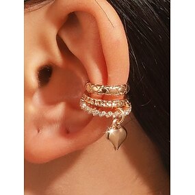 Set di orecchini a polsino regolabili con ciondolo a cuore da donna, orecchini a fascia impilati in lega color oro e argento, gioielli alla moda senza piercing per appuntamenti e regali di San Valentino