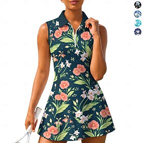 Per donna Floreale Motivo Floreale Abito da tennis Abito sportivo Senza Maniche Floreale Traspirante Tennis Golf Badminton Colletto Polo Collo con zip Vestito Verde e nero Blu marino Blu