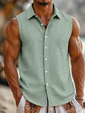 Per uomo Camicia Camicia di lino Camicia Estiva Abbigliamento da spiaggia Camicia con Bottoni Maglietta senza maniche Tinta unica Casuale Vacanza Blu Nero Bianco Verde Senza Maniche Collo ripiegato
