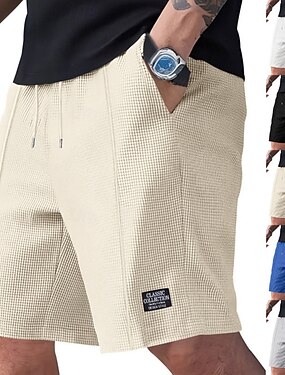 Per uomo Pantaloncini Waffle Shorts Shorts da Spiaggia Pantaloncini casual Tasca Elastico in vita Semplice Comodità Traspirante Lunghezza al ginocchio Casuale All'aperto Spiaggia Vacanza Moda Nero