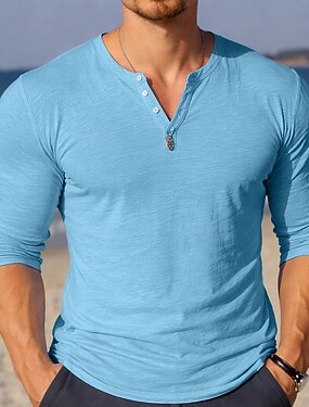 Per uomo Maglietta Maglietta in lino Manica Corta Tinta unica Semplice Vacanza Casual Bottoni Henley Casuale Quotidiano All'aperto Estate Primavera Primavera & Autunno Blu Nero Rosa Maglietta Henley