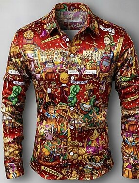 Natale Per uomo Glitter scintillanti Colore sfumato Luci natalizie Camicia Camicia in raso Camicia elegante Manica Lunga Moda Casual Feste Ferie Estate Primavera Autunno Collo ripiegato Stampa 3D